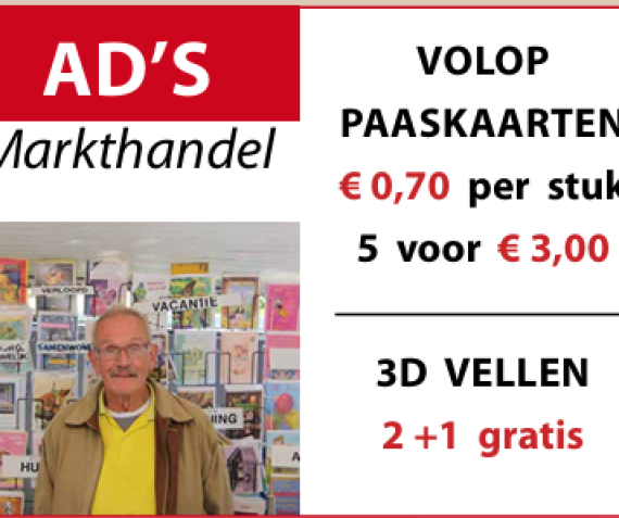 Terug naar overzicht Sinds laatste markt 49x bekeken Geldig op 26 Mar Ad’s markthandel Omschrijving Deel op Facebook Verstuur per mail Terug naar overzicht 49 x bekeken